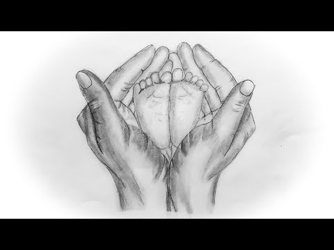 How to draw a cute baby feet in her mother hands// pencil ...